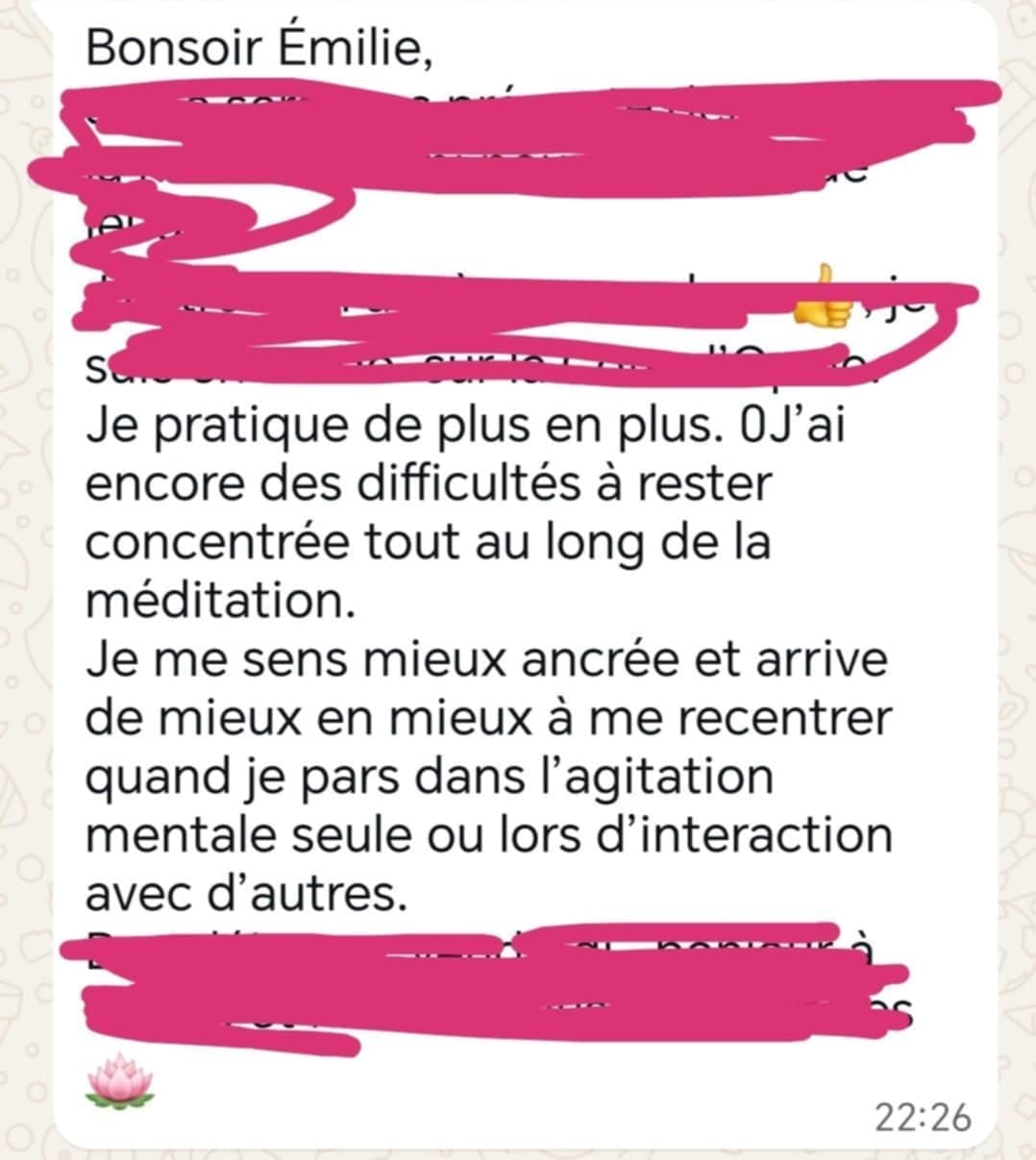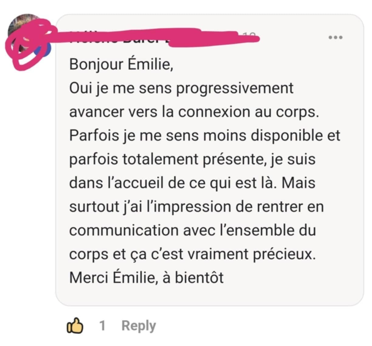 C est une belle avancée pour moi. Merci Émilie" Laura